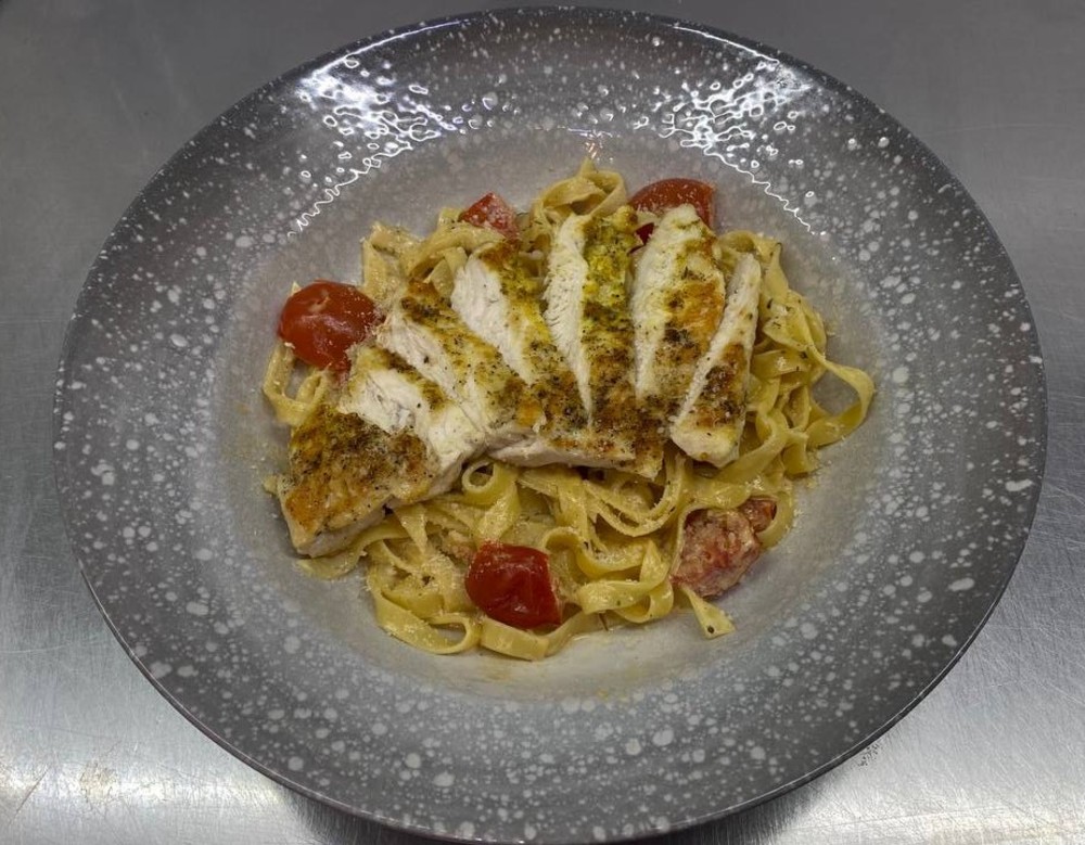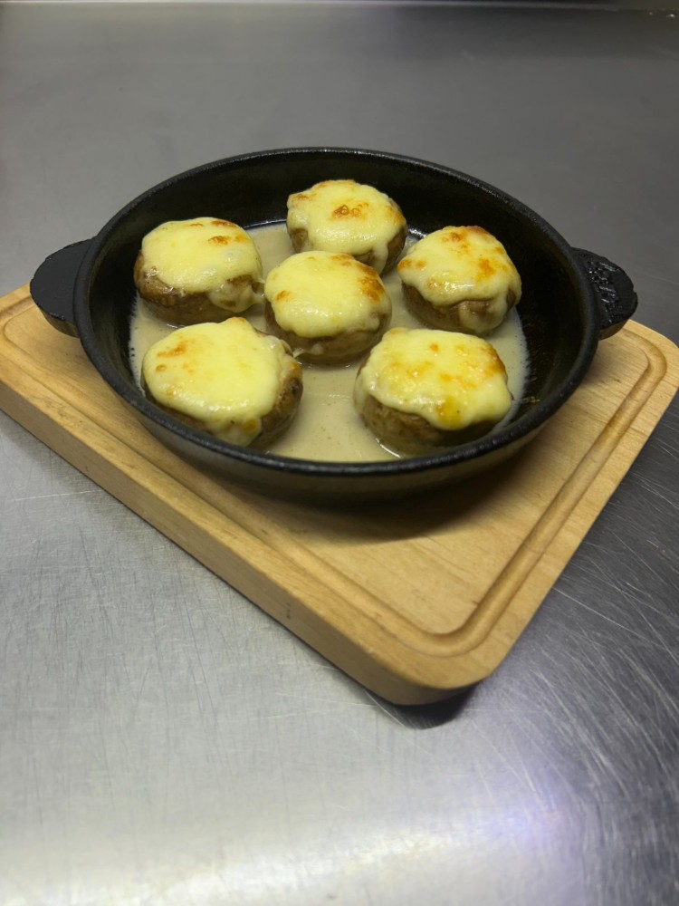 Хачапурі з куркою та грибамиТісто, куряче філе, печериці, вершки, моцарела
