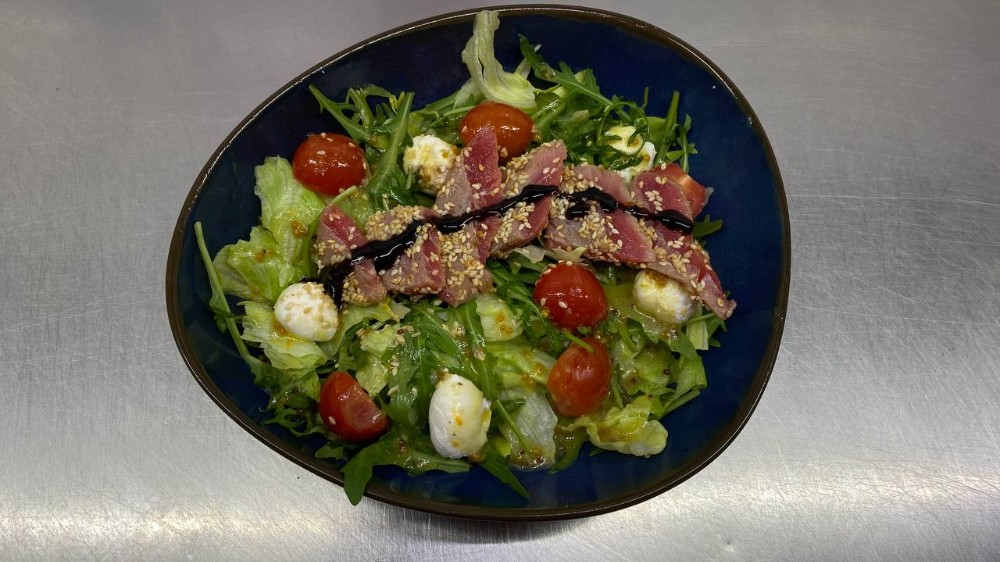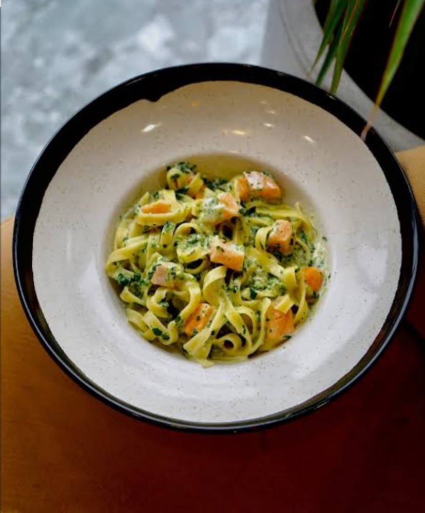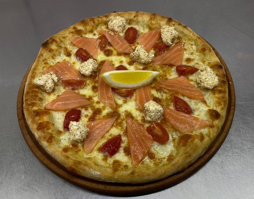 Хачапурі Човник з лососемТісто, моцарела, сулугуні, крем-сир, лосось,, вершкове масло, кунжут